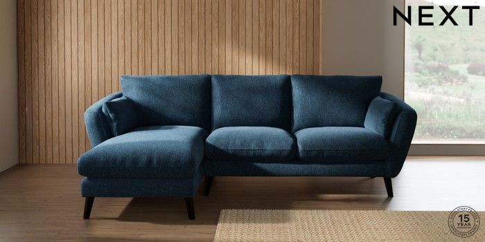 7.2.10 Orlo Relaxed Sit Medium Sofa Chaise - Left Hand Cotswold Chenille Dark Blue Retro Tapered - Dark | Made Click here to use our website with more accessibility support, for example screen readers