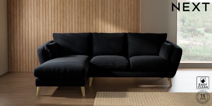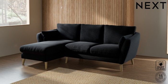 7.2.10 Orlo Relaxed Sit Medium Sofa Chaise - Left Hand Fine Chenille Easy Clean Black Retro Tapered - Light | Made Click here to use our website with more accessibility support, for example screen readers