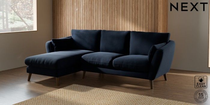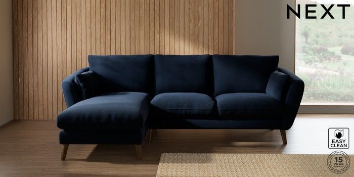 7.2.10 Orlo Relaxed Sit Medium Sofa Chaise - Left Hand Fine Chenille Easy Clean Dark Navy Blue Retro Tapered - Mid | Made Click here to use our website with more accessibility support, for example screen readers