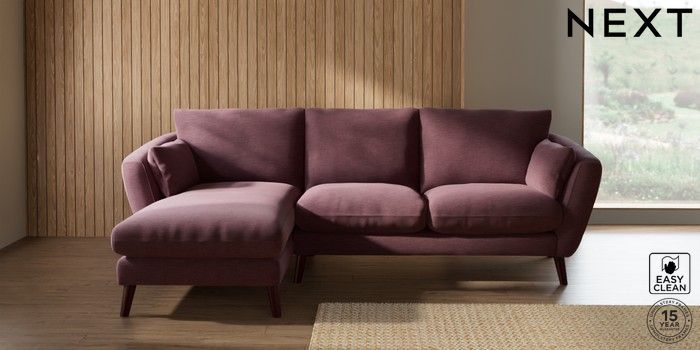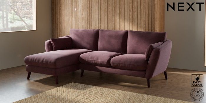 7.2.10 Orlo Relaxed Sit Medium Sofa Chaise - Left Hand Fine Chenille Easy Clean Mid Mulberry Purple Retro Tapered - Dark Brown | Made Click here to use our website with more accessibility support, for example screen readers