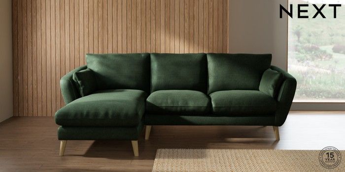 7.2.10 Orlo Relaxed Sit Medium Sofa Chaise - Left Hand Luxe Chenille Dark Green Retro Tapered - Light | Made Click here to use our website with more accessibility support, for example screen readers