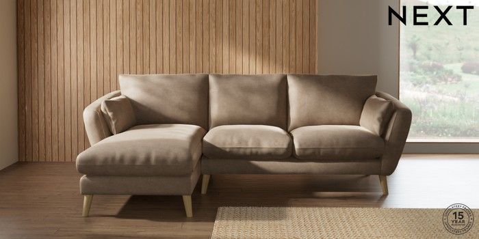 7.2.10 Orlo Relaxed Sit Medium Sofa Chaise - Left Hand Luxe Chenille Mid Camel Beige Retro Tapered - Light | Made Click here to use our website with more accessibility support, for example screen readers