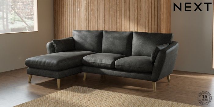 7.2.10 Orlo Relaxed Sit Medium Sofa Chaise - Left Hand Plush Chenille Dark Grey Retro Tapered - Light | Made Click here to use our website with more accessibility support, for example screen readers