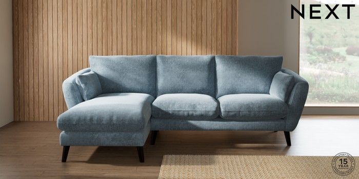 7.2.10 Orlo Relaxed Sit Medium Sofa Chaise - Left Hand Plush Chenille Light Blue Retro Tapered - Dark | Made Click here to use our website with more accessibility support, for example screen readers