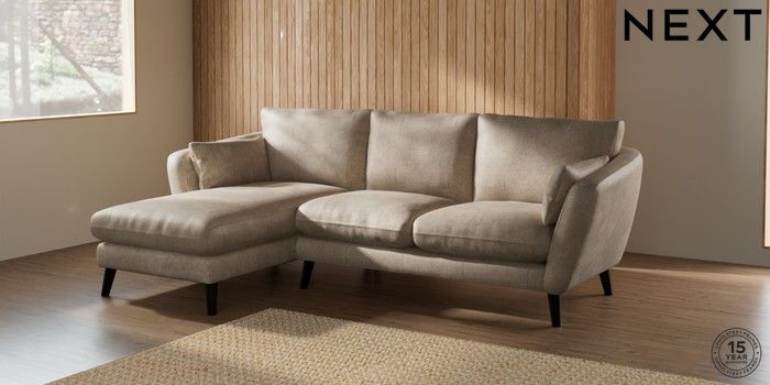 7.2.10 Orlo Relaxed Sit Medium Sofa Chaise - Left Hand Plush Chenille Light Natural Retro Tapered - Dark | Made Click here to use our website with more accessibility support, for example screen readers
