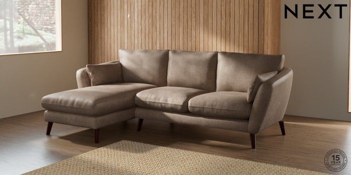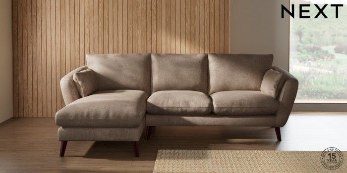 7.2.10 Orlo Relaxed Sit Medium Sofa Chaise - Left Hand Plush Chenille Mid Natural Retro Tapered - Dark Brown | Made Click here to use our website with more accessibility support, for example screen readers