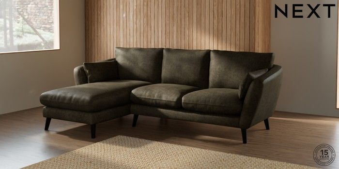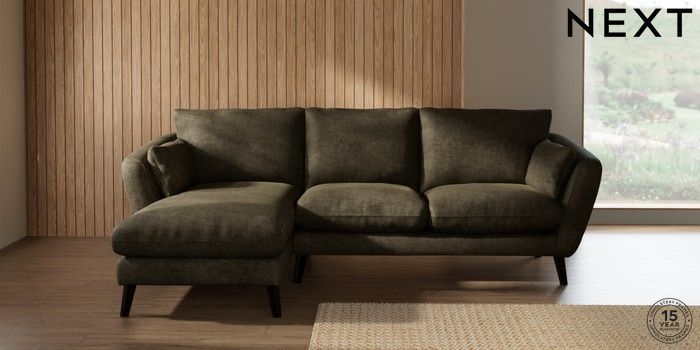 7.2.10 Orlo Relaxed Sit Medium Sofa Chaise - Left Hand Plush Chenille Moss Green Retro Tapered - Dark | Made Click here to use our website with more accessibility support, for example screen readers