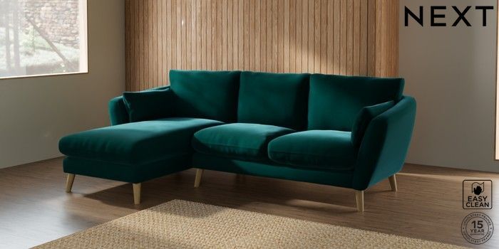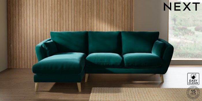 7.2.10 Orlo Relaxed Sit Medium Sofa Chaise - Left Hand Plush Velvet Easy Clean Juniper Green Retro Tapered - Light | Made Click here to use our website with more accessibility support, for example screen readers