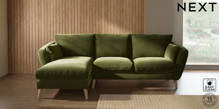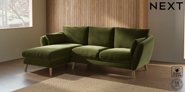 7.2.10 Orlo Relaxed Sit Medium Sofa Chaise - Left Hand Plush Velvet Easy Clean Mid Olive Green Retro Tapered - Light | Made Click here to use our website with more accessibility support, for example screen readers