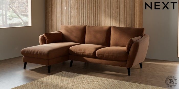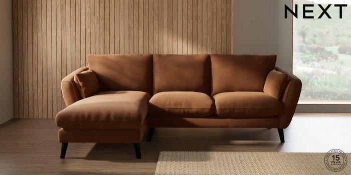 7.2.10 Orlo Relaxed Sit Medium Sofa Chaise - Left Hand Ripple Chenille Mid Rust Brown Retro Tapered - Dark | Made Click here to use our website with more accessibility support, for example screen readers