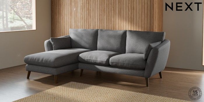 7.2.10 Orlo Relaxed Sit Medium Sofa Chaise - Left Hand Studio Chenille Mid Grey Retro Tapered - Mid | Made Click here to use our website with more accessibility support, for example screen readers