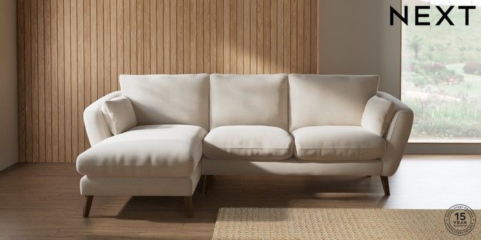 7.2.10 Orlo Relaxed Sit Medium Sofa Chaise - Left Hand Studio Chenille Oyster Retro Tapered - Mid | Made Click here to use our website with more accessibility support, for example screen readers