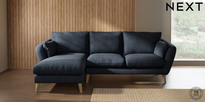 7.2.10 Orlo Relaxed Sit Medium Sofa Chaise - Left Hand Tweedy Chenille Navy Blue Retro Tapered - Light | Made Click here to use our website with more accessibility support, for example screen readers