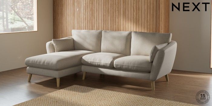 7.2.10 Orlo Relaxed Sit Medium Sofa Chaise - Left Hand Tweedy Chenille Oyster Retro Tapered - Light | Made Click here to use our website with more accessibility support, for example screen readers