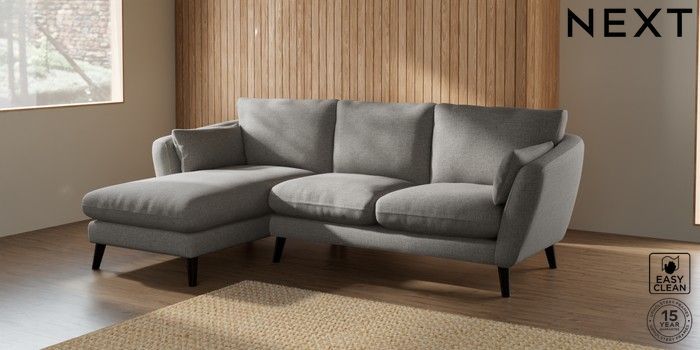 7.2.10 Orlo Relaxed Sit Medium Sofa Chaise - Left Hand Woven Chenille Easy Clean Light Grey Retro Tapered - Dark | Made Click here to use our website with more accessibility support, for example screen readers