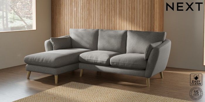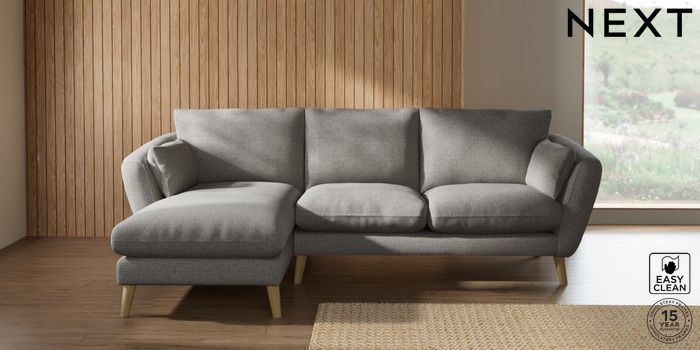 7.2.10 Orlo Relaxed Sit Medium Sofa Chaise - Left Hand Woven Chenille Easy Clean Light Grey Retro Tapered - Light | Made Click here to use our website with more accessibility support, for example screen readers