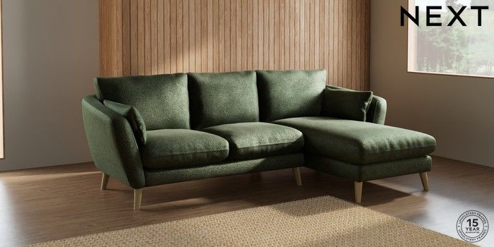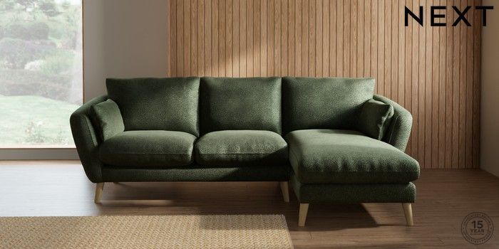 7.2.10 Orlo Relaxed Sit Medium Sofa Chaise - Right Hand Boucle Chenille Dark Moss Green Retro Tapered - Light | Made Click here to use our website with more accessibility support, for example screen readers