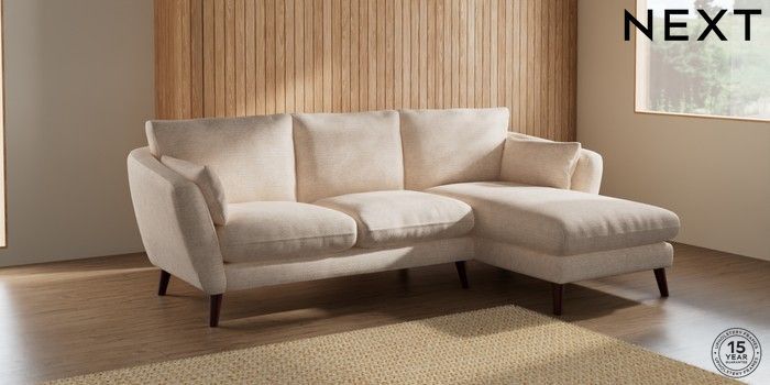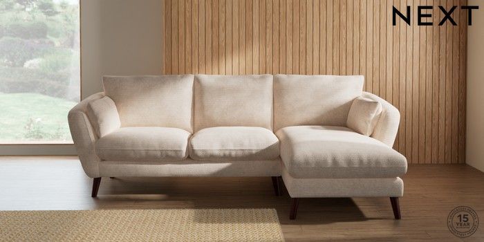 7.2.10 Orlo Relaxed Sit Medium Sofa Chaise - Right Hand Boucle Chenille Oyster Retro Tapered - Dark Brown | Made Click here to use our website with more accessibility support, for example screen readers