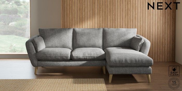 7.2.10 Orlo Relaxed Sit Medium Sofa Chaise - Right Hand Chunky Boucle Easy Clean Light Grey Retro Tapered - Light | Made Click here to use our website with more accessibility support, for example screen readers