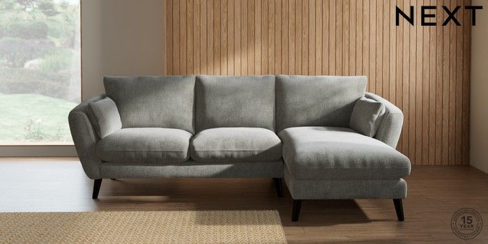 7.2.10 Orlo Relaxed Sit Medium Sofa Chaise - Right Hand Chunky Chenille Light Grey Retro Tapered - Dark | Made Click here to use our website with more accessibility support, for example screen readers