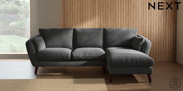 7.2.10 Orlo Relaxed Sit Medium Sofa Chaise - Right Hand Chunky Texture Dark Grey Retro Tapered - Dark Brown | Made Click here to use our website with more accessibility support, for example screen readers