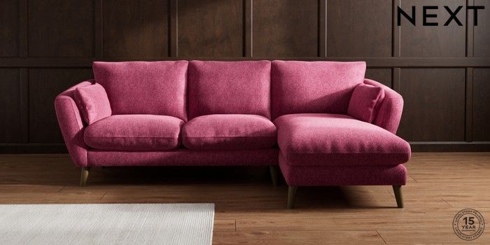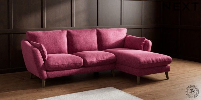 7.2.10 Orlo Relaxed Sit Medium Sofa Chaise - Right Hand Cotswold Chenille Dark Raspberry Pink Retro Tapered - Mid | Made Click here to use our website with more accessibility support, for example screen readers