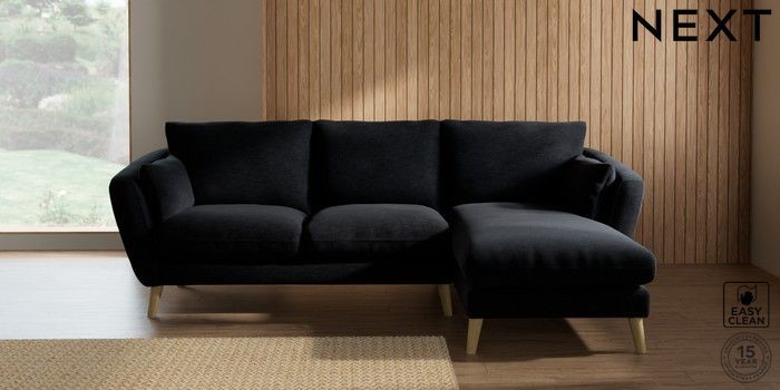 7.2.10 Orlo Relaxed Sit Medium Sofa Chaise - Right Hand Fine Chenille Easy Clean Black Retro Tapered - Light | Made Click here to use our website with more accessibility support, for example screen readers