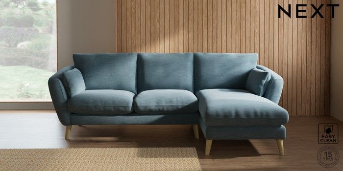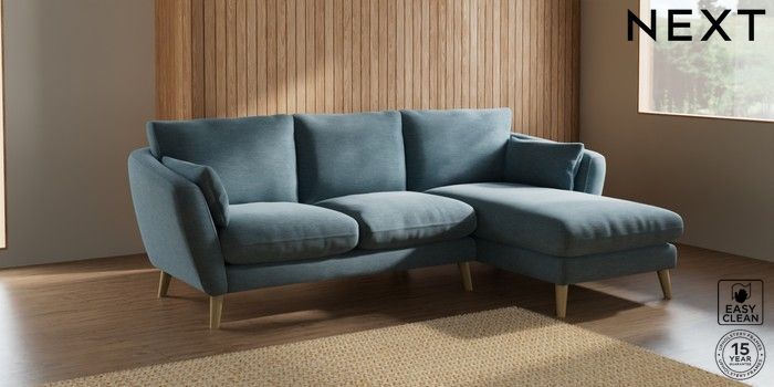 7.2.10 Orlo Relaxed Sit Medium Sofa Chaise - Right Hand Fine Chenille Easy Clean Mid Blue Retro Tapered - Light | Made Click here to use our website with more accessibility support, for example screen readers