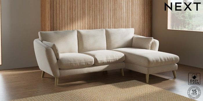 7.2.10 Orlo Relaxed Sit Medium Sofa Chaise - Right Hand Fine Chenille Easy Clean Oyster Retro Tapered - Light | Made Click here to use our website with more accessibility support, for example screen readers