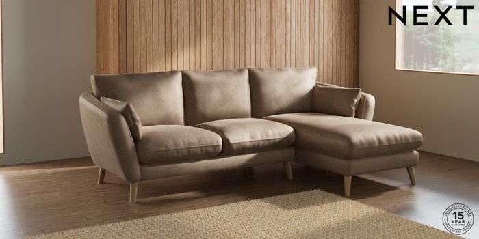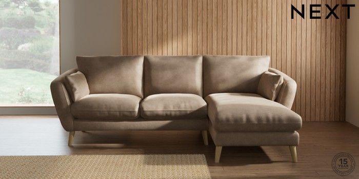 7.2.10 Orlo Relaxed Sit Medium Sofa Chaise - Right Hand Luxe Chenille Mid Camel Beige Retro Tapered - Light | Made Click here to use our website with more accessibility support, for example screen readers