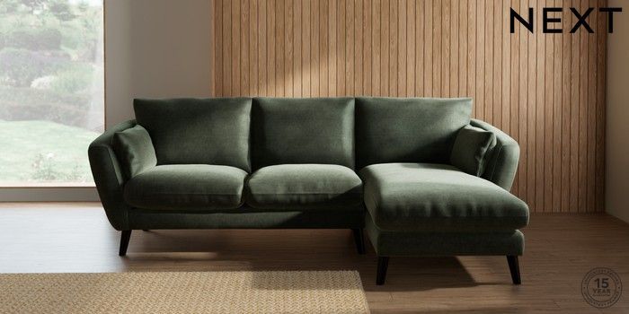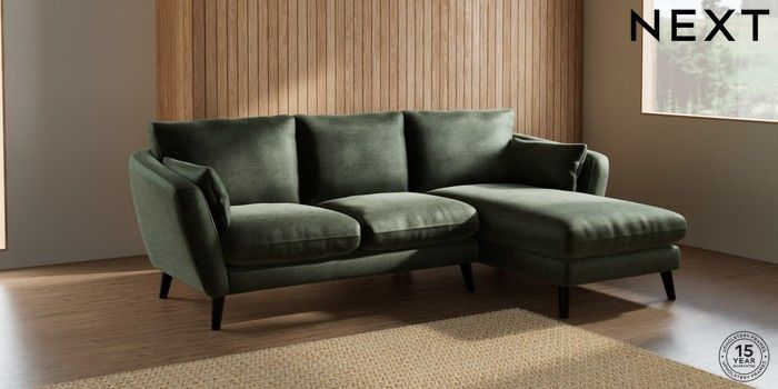 7.2.10 Orlo Relaxed Sit Medium Sofa Chaise - Right Hand Luxe Chenille Mid Green Retro Tapered - Dark | Made Click here to use our website with more accessibility support, for example screen readers