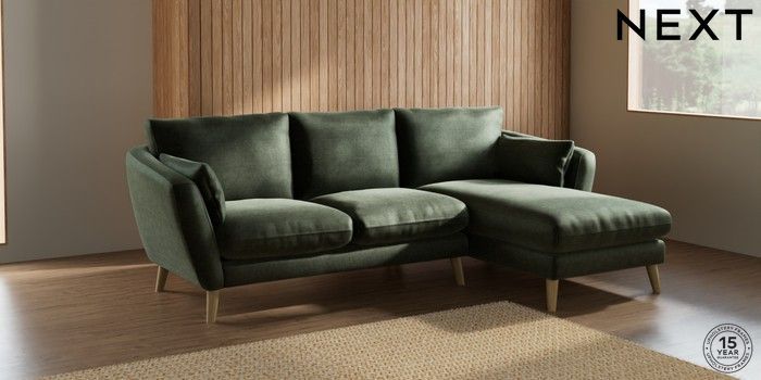 7.2.10 Orlo Relaxed Sit Medium Sofa Chaise - Right Hand Luxe Chenille Mid Green Retro Tapered - Light | Made Click here to use our website with more accessibility support, for example screen readers