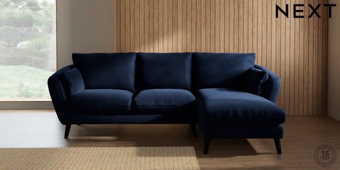 7.2.10 Orlo Relaxed Sit Medium Sofa Chaise - Right Hand Luxe Chenille Navy Blue Retro Tapered - Dark | Made Click here to use our website with more accessibility support, for example screen readers