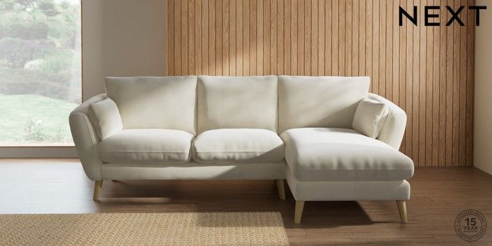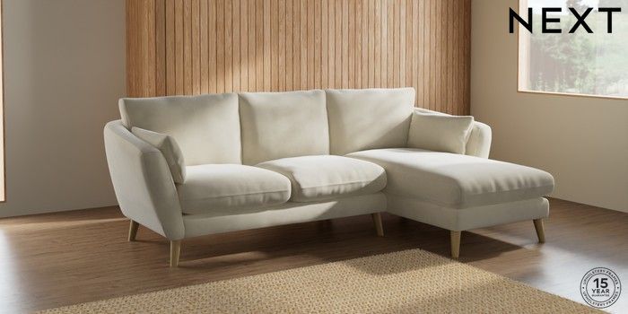7.2.10 Orlo Relaxed Sit Medium Sofa Chaise - Right Hand Luxe Chenille Oyster Retro Tapered - Light | Made Click here to use our website with more accessibility support, for example screen readers