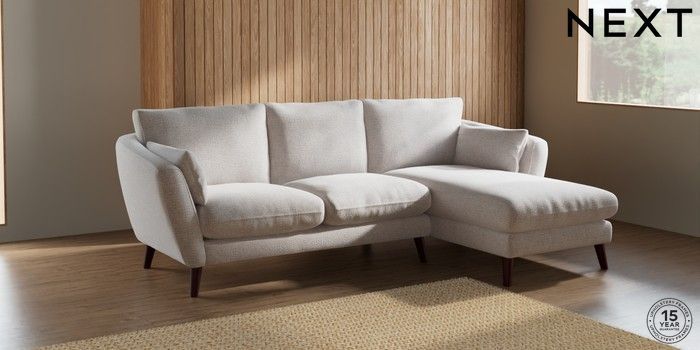 7.2.10 Orlo Relaxed Sit Medium Sofa Chaise - Right Hand Multi Weave Oyster Retro Tapered - Dark Brown | Made Click here to use our website with more accessibility support, for example screen readers
