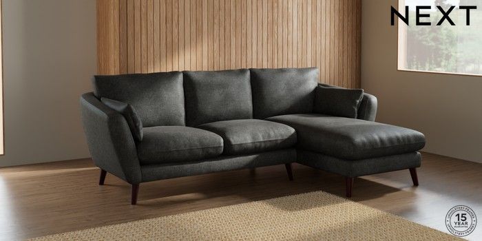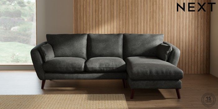 7.2.10 Orlo Relaxed Sit Medium Sofa Chaise - Right Hand Plush Chenille Dark Grey Retro Tapered - Dark Brown | Made Click here to use our website with more accessibility support, for example screen readers