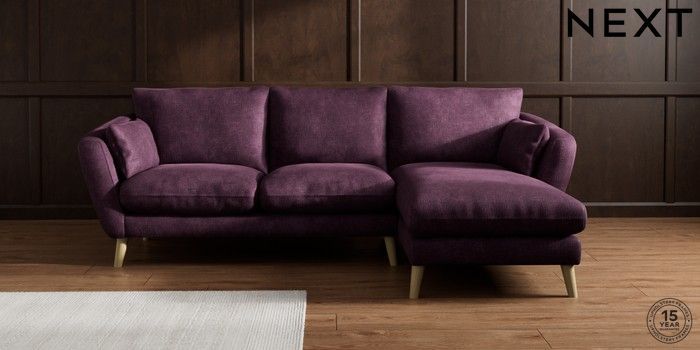 7.2.10 Orlo Relaxed Sit Medium Sofa Chaise - Right Hand Plush Chenille Dark Plum Purple Retro Tapered - Light | Made Click here to use our website with more accessibility support, for example screen readers