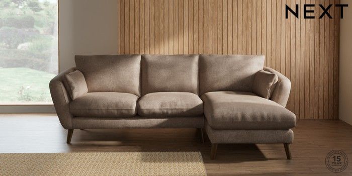 7.2.10 Orlo Relaxed Sit Medium Sofa Chaise - Right Hand Plush Chenille Mid Natural Retro Tapered - Mid | Made Click here to use our website with more accessibility support, for example screen readers