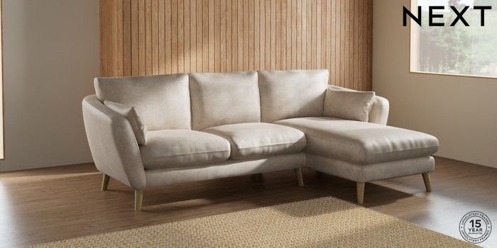 7.2.10 Orlo Relaxed Sit Medium Sofa Chaise - Right Hand Plush Chenille Oyster Retro Tapered - Light | Made Click here to use our website with more accessibility support, for example screen readers