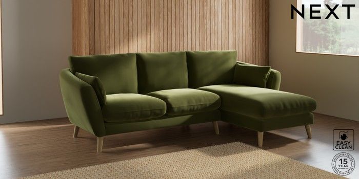 7.2.10 Orlo Relaxed Sit Medium Sofa Chaise - Right Hand Plush Velvet Easy Clean Mid Olive Green Retro Tapered - Light | Made Click here to use our website with more accessibility support, for example screen readers