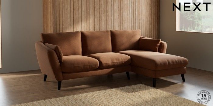 7.2.10 Orlo Relaxed Sit Medium Sofa Chaise - Right Hand Ripple Chenille Mid Rust Brown Retro Tapered - Dark | Made Click here to use our website with more accessibility support, for example screen readers