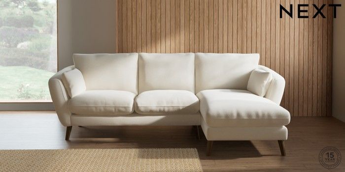 7.2.10 Orlo Relaxed Sit Medium Sofa Chaise - Right Hand Ripple Chenille Oyster Retro Tapered - Mid | Made Click here to use our website with more accessibility support, for example screen readers