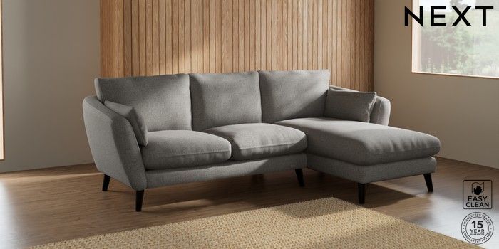 7.2.10 Orlo Relaxed Sit Medium Sofa Chaise - Right Hand Woven Chenille Easy Clean Light Grey Retro Tapered - Dark | Made Click here to use our website with more accessibility support, for example screen readers