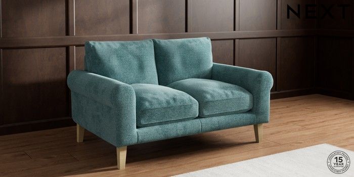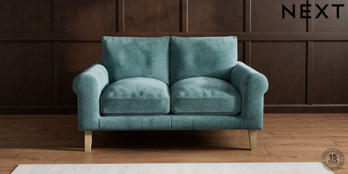 7.2.10 Palermo Relaxed Sit 2 Seater Small Sofa Chunky Chenille Mid Teal Green Tapered - Light | Made Click here to use our website with more accessibility support, for example screen readers