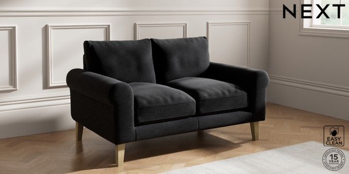 7.2.10 Palermo Relaxed Sit 2 Seater Small Sofa Fine Chenille Easy Clean Black Tapered - Light | Made Click here to use our website with more accessibility support, for example screen readers