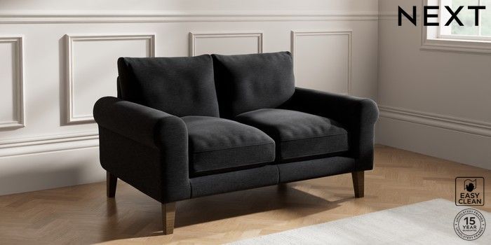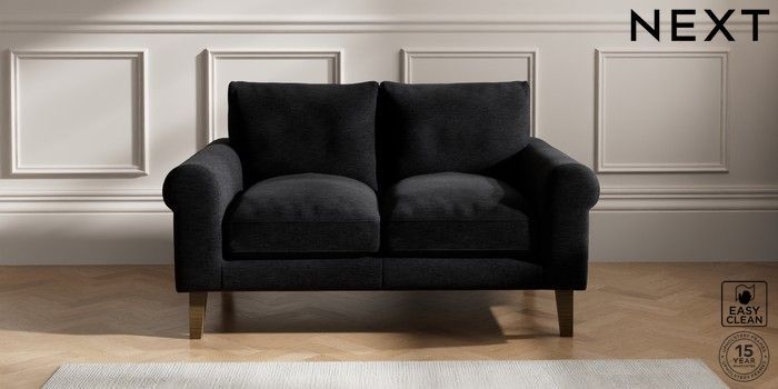 7.2.10 Palermo Relaxed Sit 2 Seater Small Sofa Fine Chenille Easy Clean Black Tapered - Mid | Made Click here to use our website with more accessibility support, for example screen readers