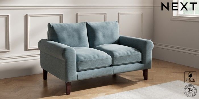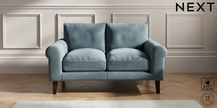 7.2.10 Palermo Relaxed Sit 2 Seater Small Sofa Fine Chenille Easy Clean Mid Blue Tapered - Dark Brown | Made Click here to use our website with more accessibility support, for example screen readers