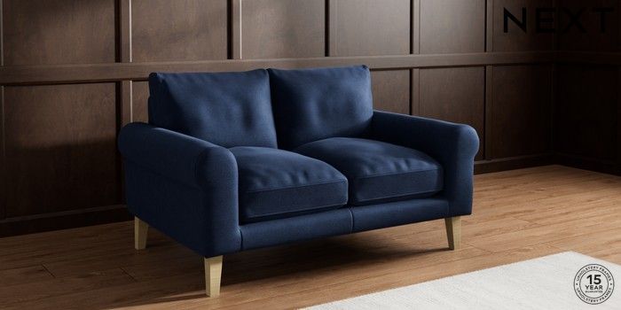 7.2.10 Palermo Relaxed Sit 2 Seater Small Sofa Luxe Chenille Navy Blue Tapered - Light | Made Click here to use our website with more accessibility support, for example screen readers