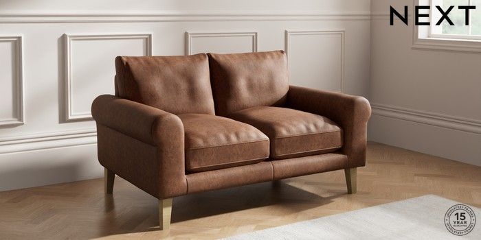 7.2.10 Palermo Relaxed Sit 2 Seater Small Sofa Monza Faux Leather Easy Clean Chestnut Brown Tapered - Light | Made Click here to use our website with more accessibility support, for example screen readers