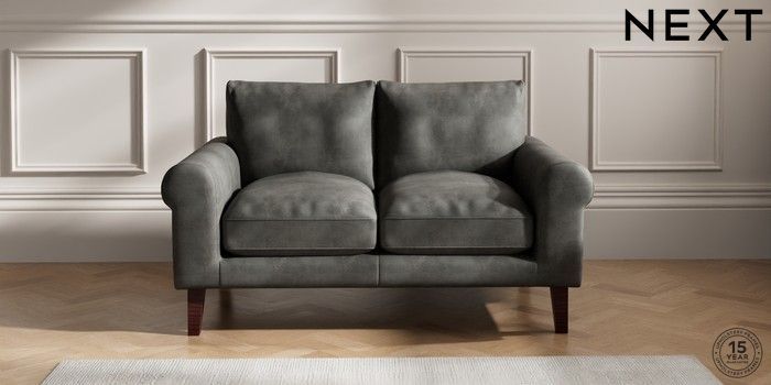 7.2.10 Palermo Relaxed Sit 2 Seater Small Sofa Monza Faux Leather Easy Clean Dark Grey Tapered - Dark Brown | Made Click here to use our website with more accessibility support, for example screen readers